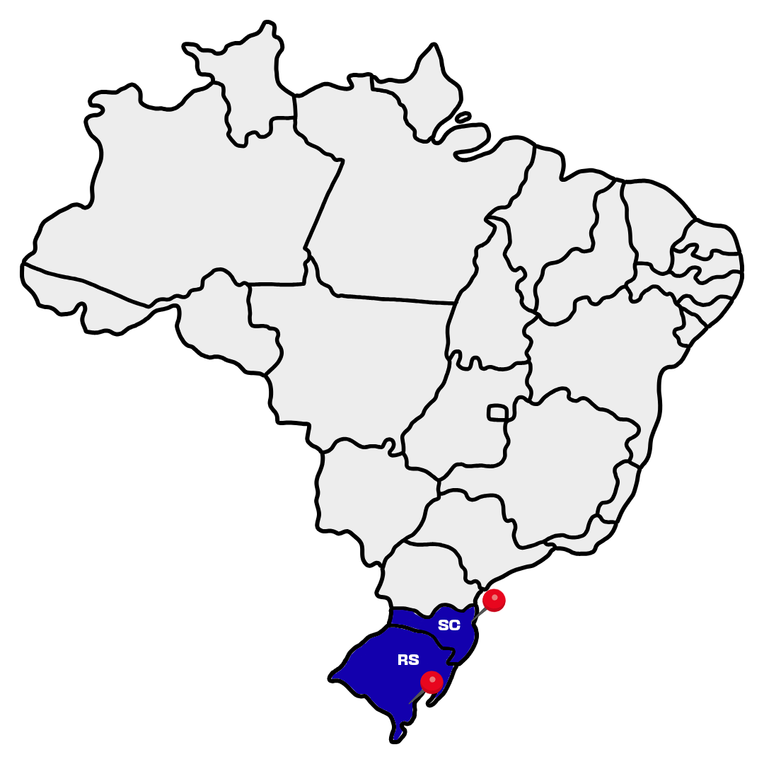 Nossa matriz em Itajaí/SC e filial em Rio Grande/RS nos colocam próximos aos principais portos e centros logísticos do país.